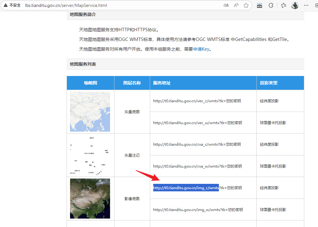 即:http://t0.tianditu.gov.cn/img_c/esri/wmts。